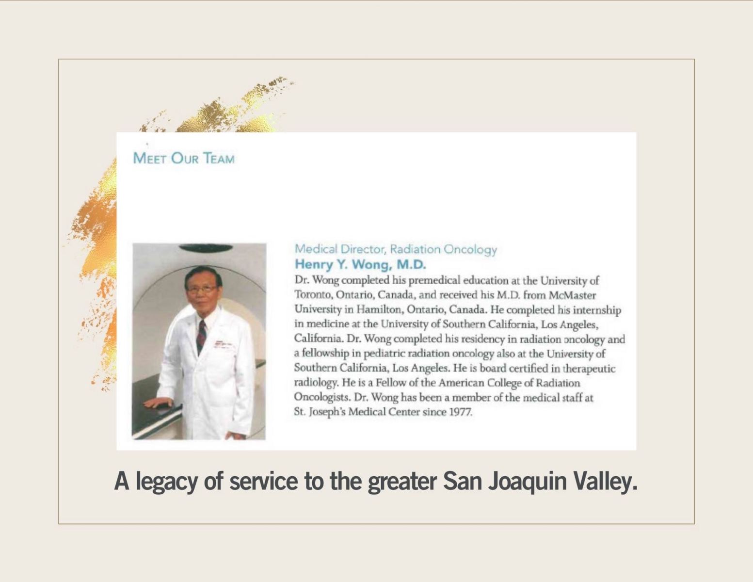 Each page of the book is adorned with narratives of hope and healing, showcasing the tangible impact of Henry and Sylvia’s generosity. From funding medical infrastructure to supporting clinical programs, their visionary leadership has left an indelible mark on St. Joseph’s Medical Center and beyond. Moreover, the book pays tribute to Dr. Wong, a radiology oncologist who dedicated 37 years of service to the hospital, exemplifying unwavering dedication to patient care and clinical excellence.
